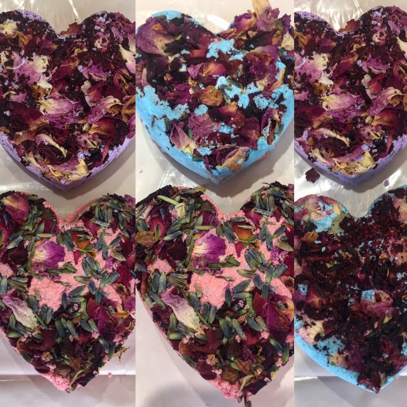 Each guest takes home a handmade bath bomb, soap, and a decorated gift bag.